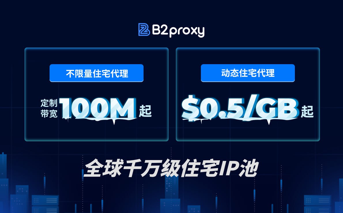 随着跨境电商、数据采集、广告验证等行业对“真实用户访问环境”的依赖不断增强,住宅代理凭借其高匿名度与低封禁率,成为企业和开发者的首选。 在众多服务商中,B2Proxy以其稳定的连接性能、覆盖全球的住