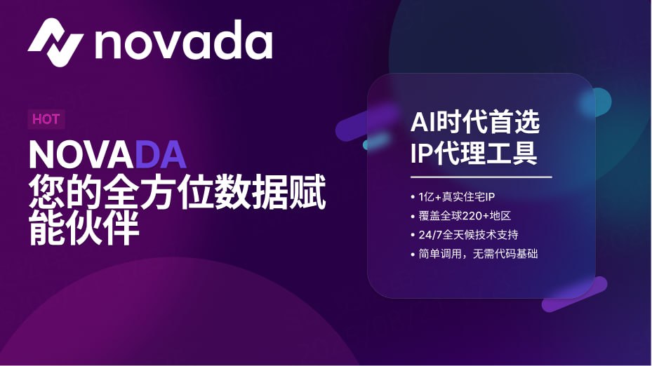 数据洞察,决胜未来:Novada,您的全方位数据赋能伙伴 Novada,作为您的数据驱动业务的重要增长工具,我们不仅提供最前沿的IP代理服务,更打造了贯穿数据获取全链路的解决方案,从基础的IP代理,到